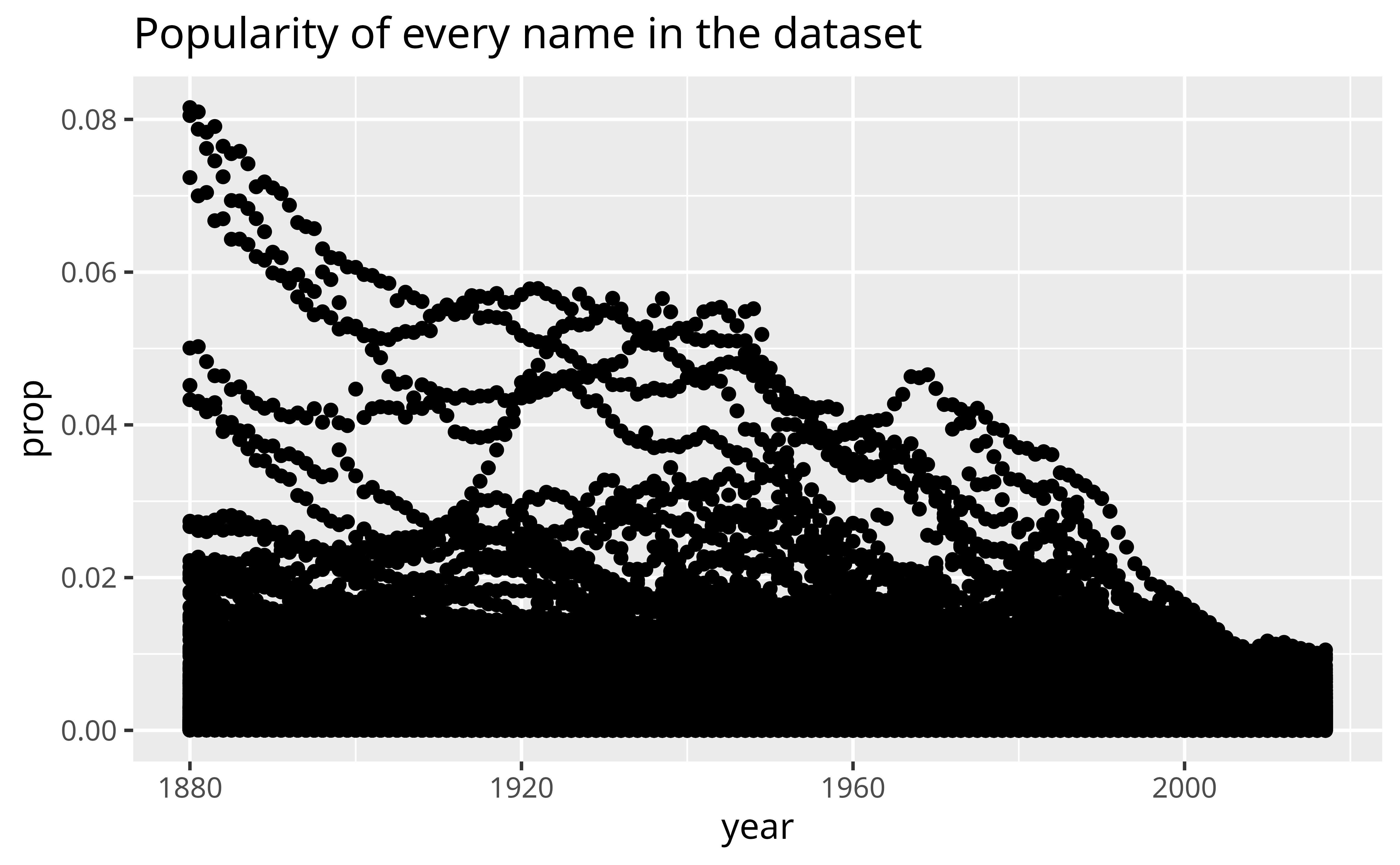 geom_point(aes(x = year, y = prop)) +