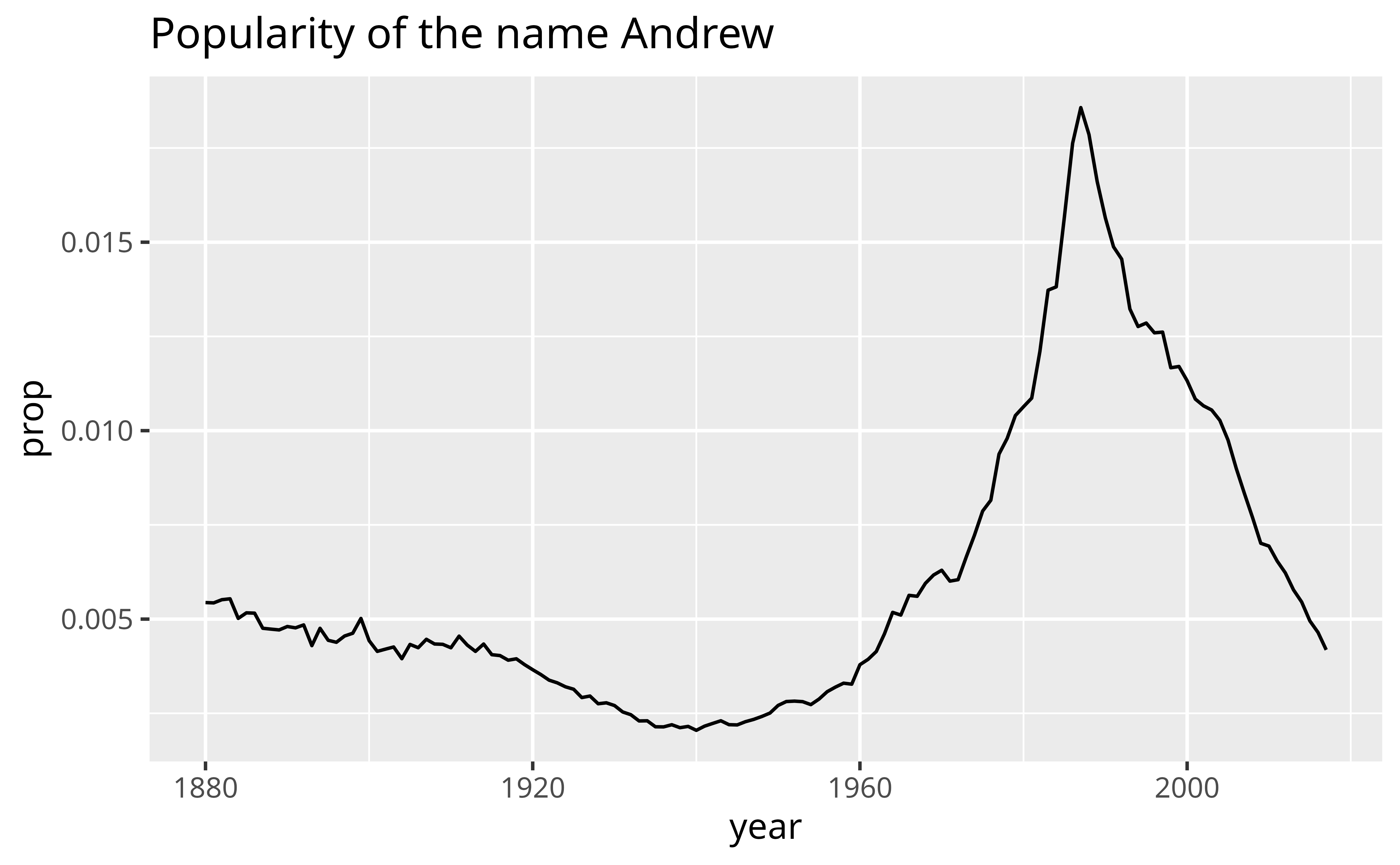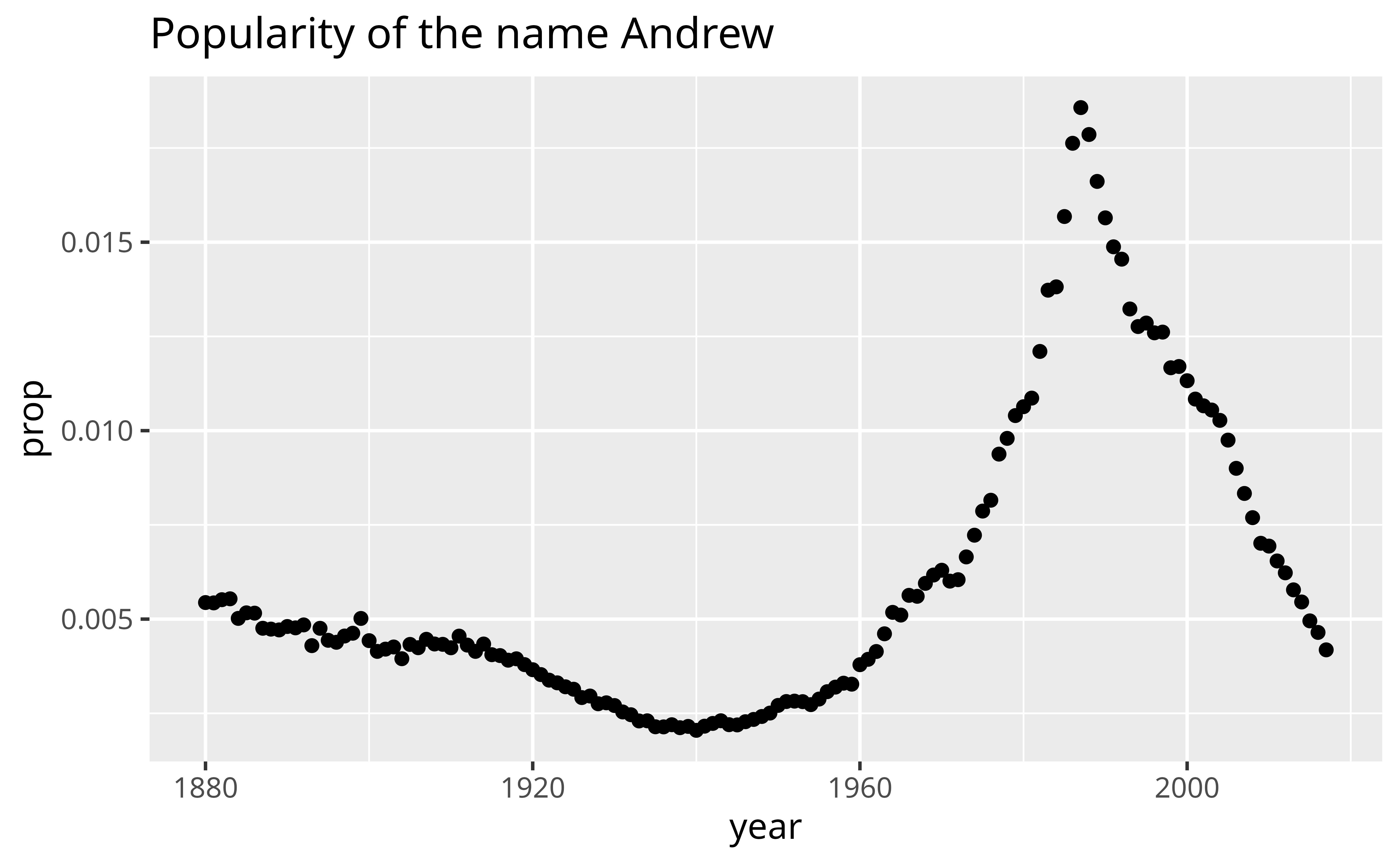 labs(title = "Popularity of the name Andrew")