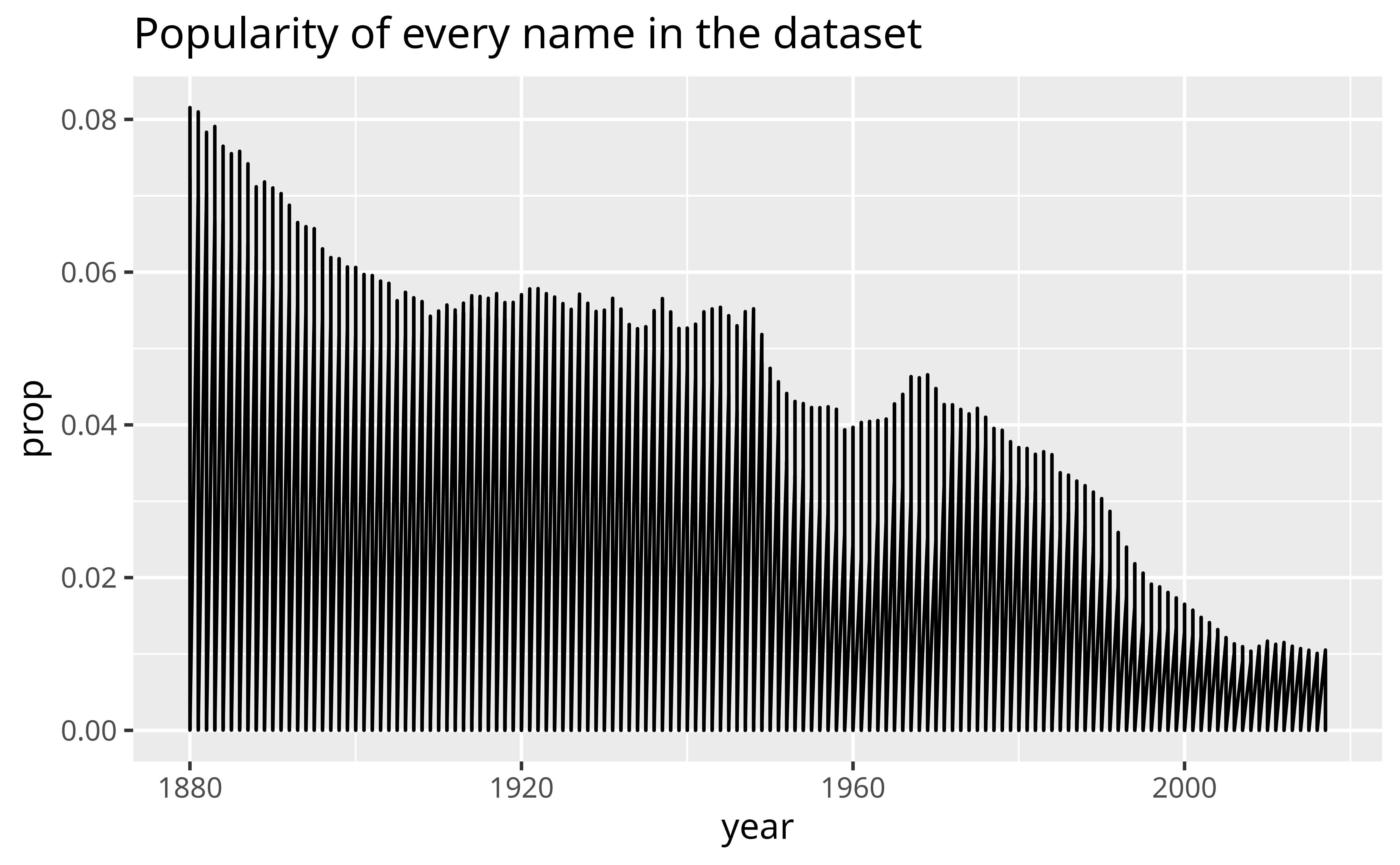 But before you do, you will need to trim down babynames. At the moment, there are more rows in babynames than you need to build your plot.