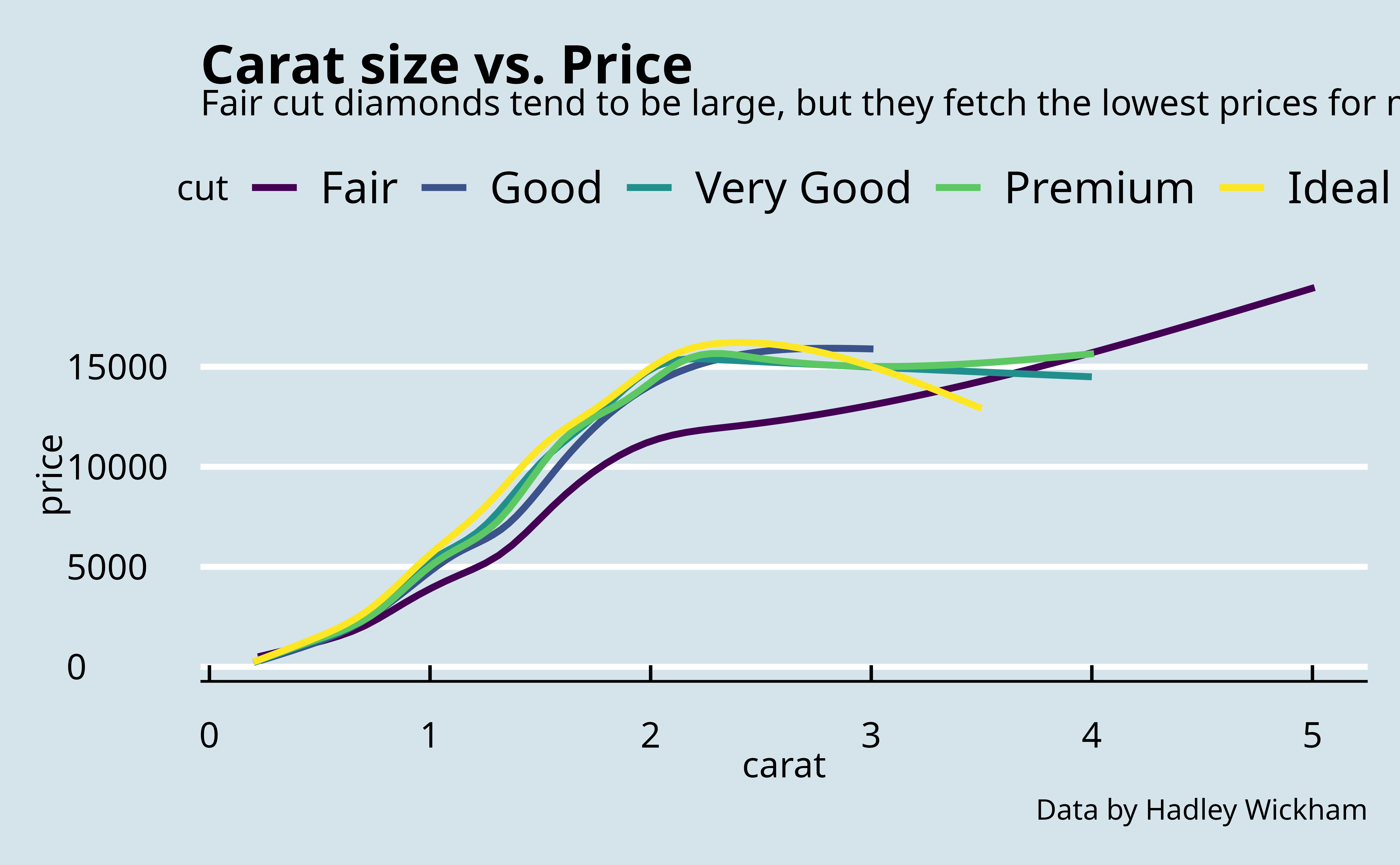 theme_base()theme_calc()theme_economist()theme_economist_white()theme_excel()theme_few()theme_fivethirtyeight()theme_foundation()theme_gdocs()theme_hc()theme_igray()theme_map()theme_pander()theme_par()theme_solarized()theme_solarized_2()theme_solid()theme_stata()theme_tufte()theme_wsj()Try plotting p1 with at least two or three of the themes mentioned above.